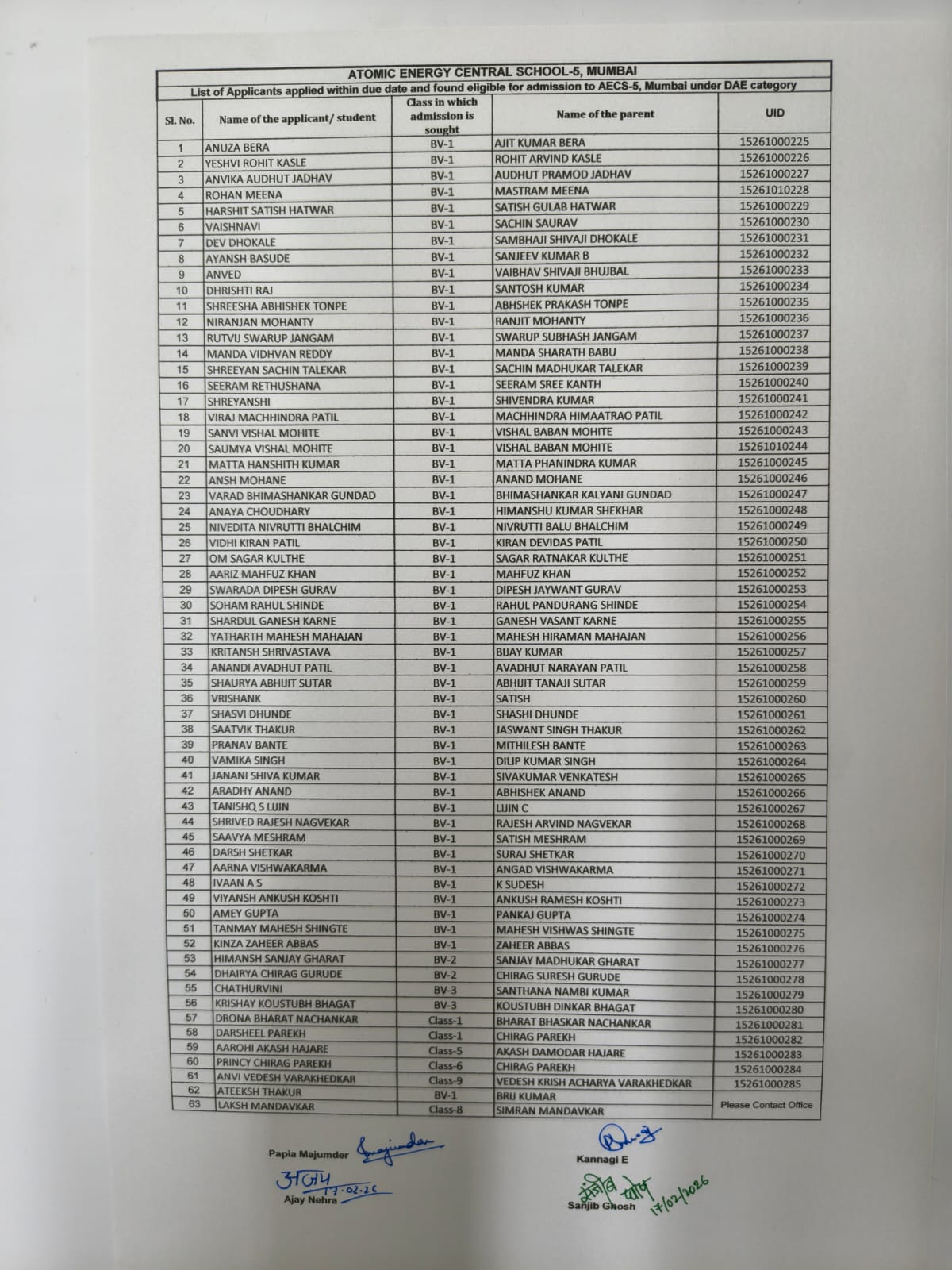 (Under the Aegis of Atomic Energy Education Society, An autonomus body under Dept. Of Atomic Energy, Govt. Of India)